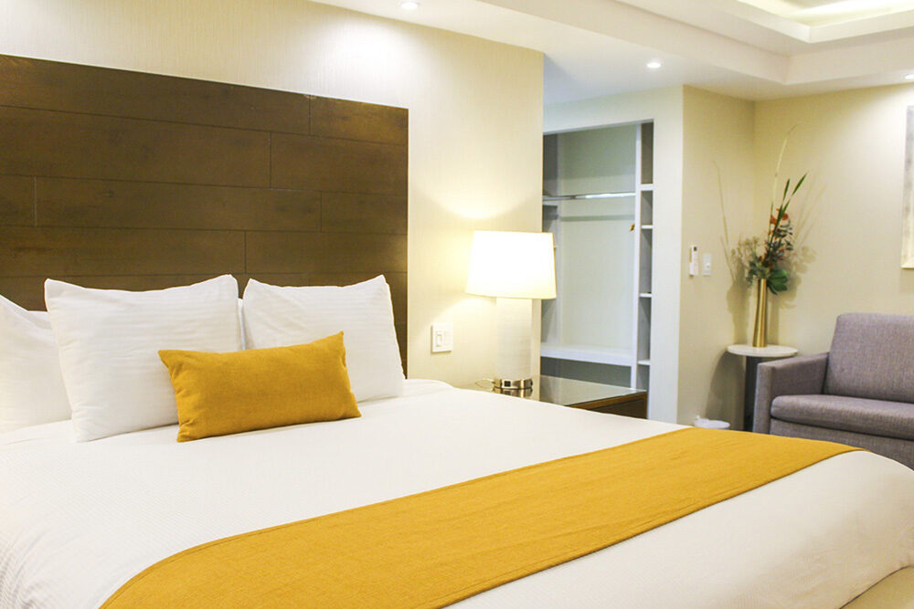 Bienvenido a Del Mar Inn Rosarito, donde nuestra Habitación Jr Suite te ofrece comodidad y funcionalidad. Con capacidad para 2 personas, esta habitación de 35 m² cuenta con una cama King Size, baño privado con regadera y Tina de Hidromasaje. Disfruta del aire acondicionado, el escritorio y el teléfono, así como del servicio de limpieza diaria. Nuestras instalaciones incluyen conexión Wi-Fi y estacionamiento gratuito. El restaurante Habanero es un buffet de comida mexicana y deliciosos desayunos, hablamos inglés y español. Servicios adicionales como spa, caja fuerte, plancha, secadora y cafetera están disponibles bajo solicitud. ¡Te esperamos para una experiencia de hospedaje excepcional!